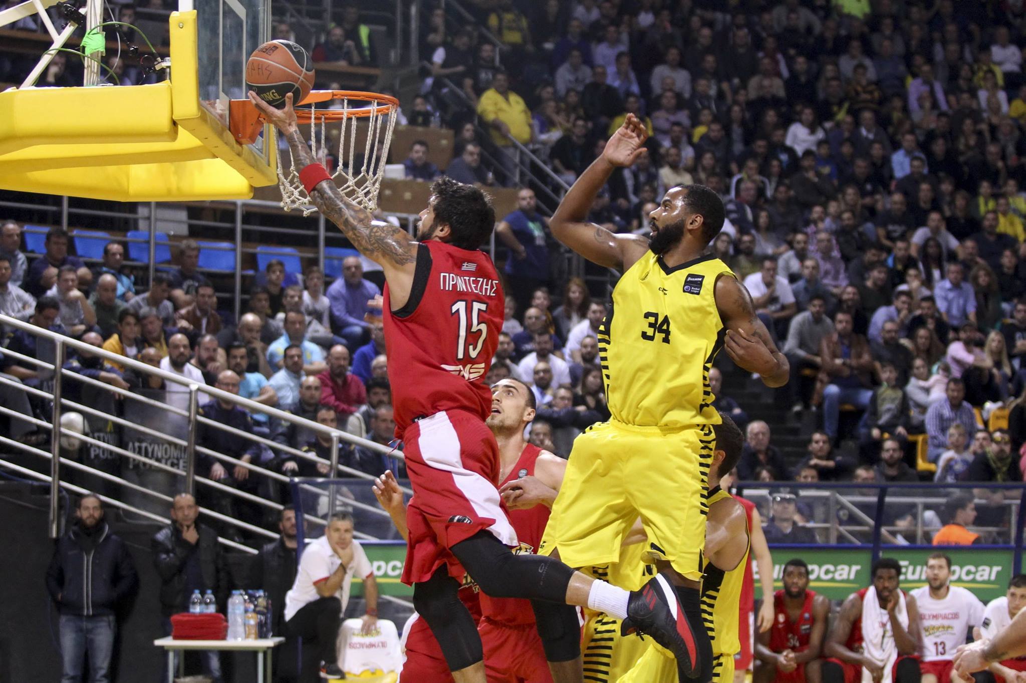 Foto:Olympiacos B.C Printzesis entra a canasta ante AEK de Atenas en la liga griega