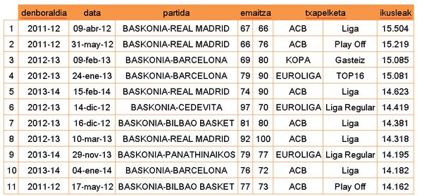 Datos de las mejores asistencias al Buesa Arena.Fuente Iñaki Garaialde @ipuntog