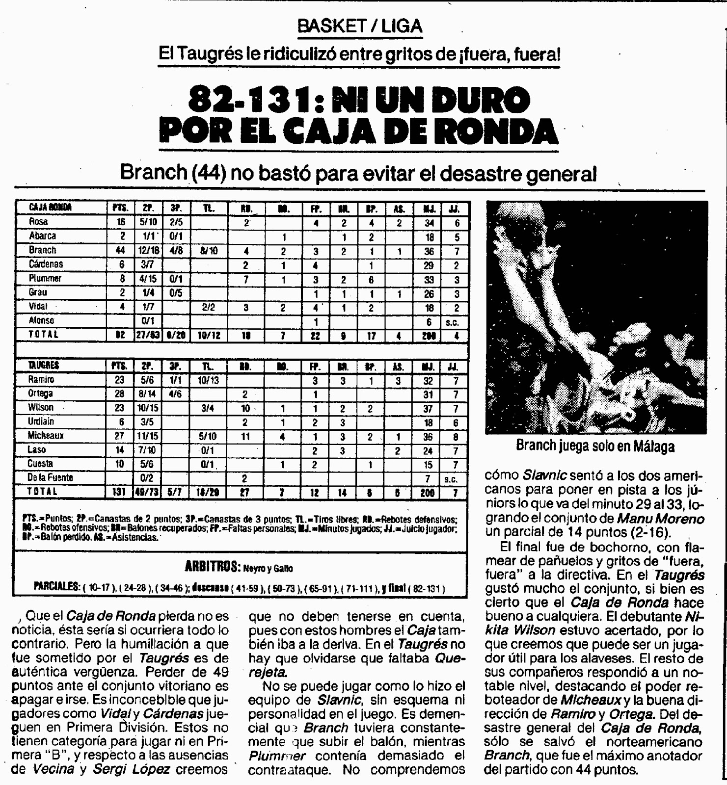 1º 87/88 Caja de Ronda – Taugrés Baskonia 82-131