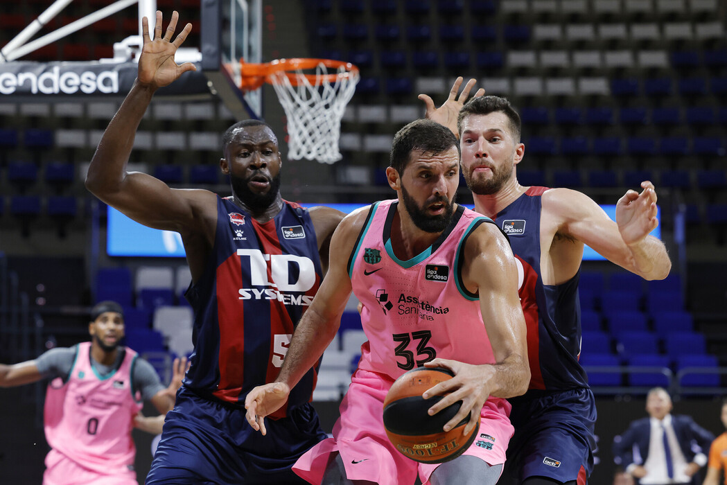 Foto:acb Photo / E. Cobos.Jekiri y Peters presionan a Mirotic en la semifinal de la Supercopa ACB