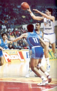 Drazen Petrovic en su debut con el Real Madrid ante unos jóvenes estudiantiles Antúnez y Herreros.