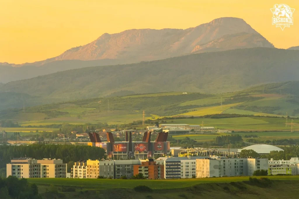 Foto:Saski Baskonia. El Buesa Arena al fondo de la imagen durante los días previos a la Final Four de 2019