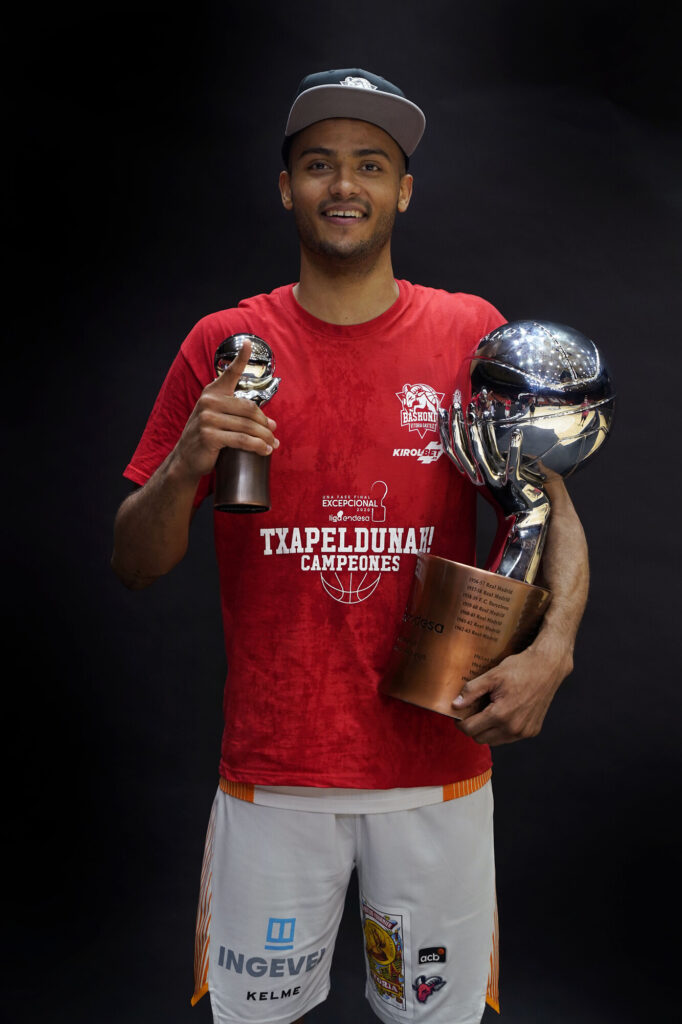 Foto:ACBphoto/M.Pozo. Shavon Shields con el trofeo de campeón de la Liga ACB.