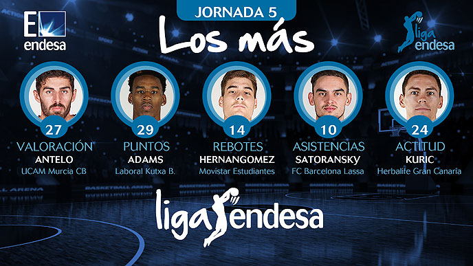Los 29 puntos que anotó ayer Darius Adams en Valencia no permitieron al Baskonia mantener su condición de invicto en la Liga ACB pero si para ser reconocido como el máximo anotador de la jornada cinco.