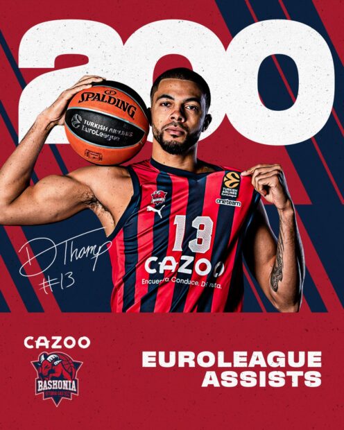 Thompson que repartió 11 asistencias ante Alba Berlín totaliza un total de 205 pases de canasta en 31 partidos, con un promedio de 6,6 asistencias por jornada.