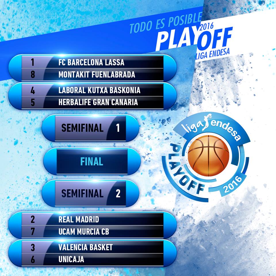 Finalizada la última jornada de la liga regular, ya se conocen los enfrentamientos que enfrentarán a los ocho equipos clasificados para disputar los play offs por el titulo de la temporada 15/16 a partir del jueves 19 de mayo.