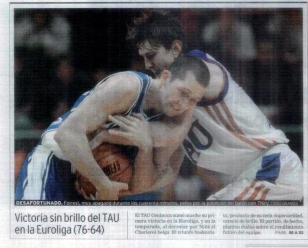 - La primera victoria: 25/10/00. Tau Cerámica Baskonia 76-64 al Spirou Basket