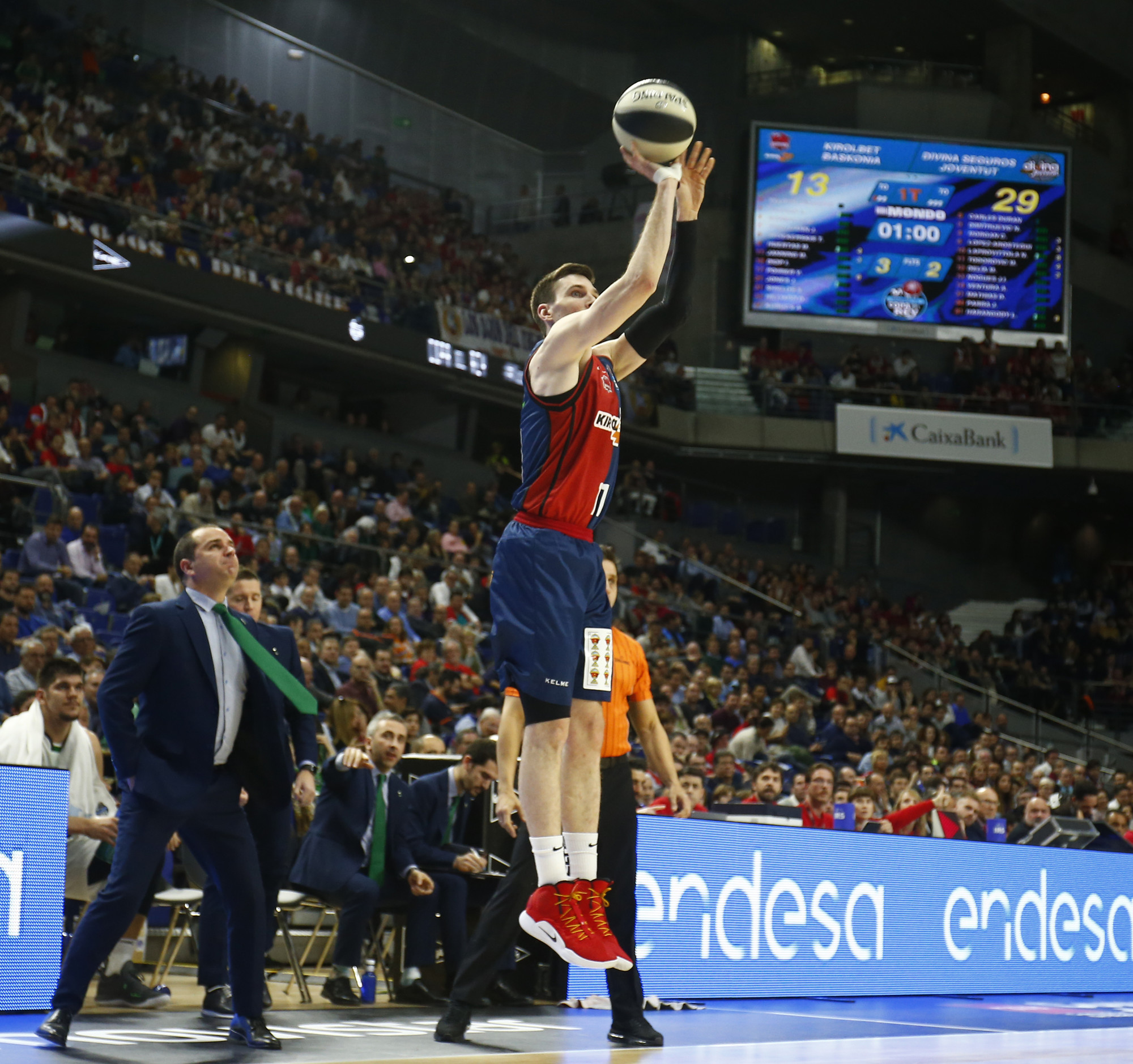 Foto:Saski Baskonia. Shengelia bajo el marcador del Buesa Arena.