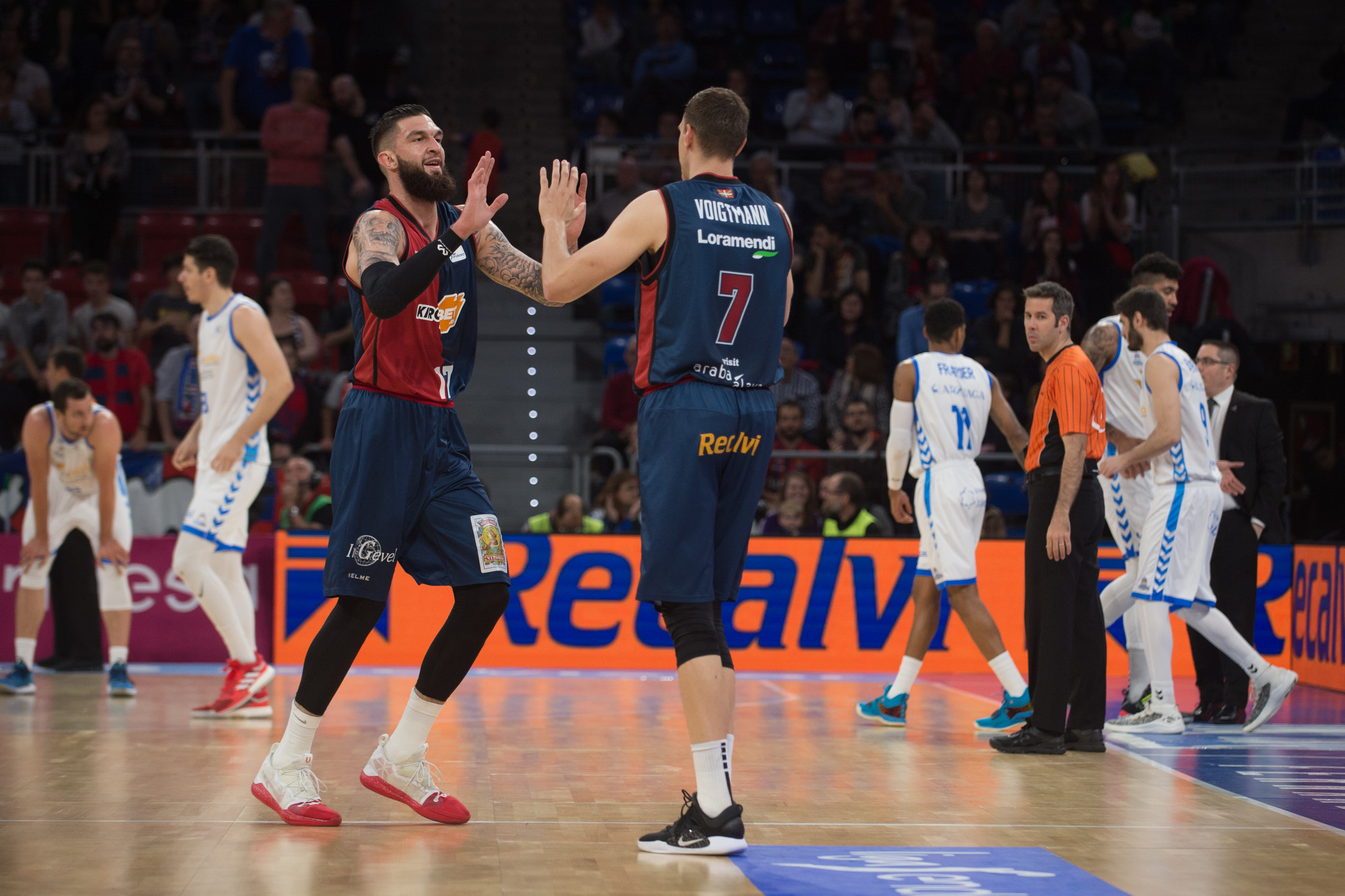 Foto:ACB Photo / A. Bouzo Poirier choca sus manos con Voigtmann ante San Pablo Burgos