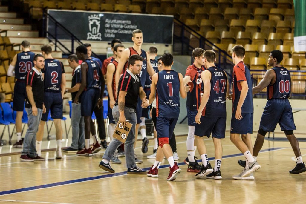 Foto:Saski Baskonia. A la derecha,el joven base del filial Arturs Kurucs