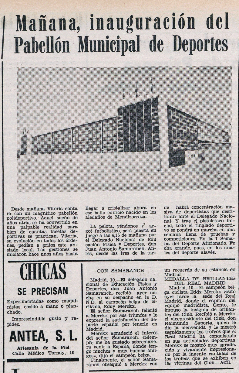 El 11 de octubre de 1969 se inaugura el Polideportivo de Mendizorroza. El acto contó con la presencia del Delegado Nacional de Educación Física y Deporte, Juan Antonio Samaranch.