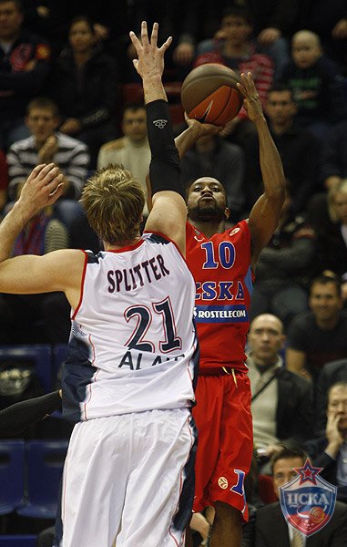 Foto: CSKA Basket. Splitter ante J.R Holden en el Top 8 de Euroliga (2010)