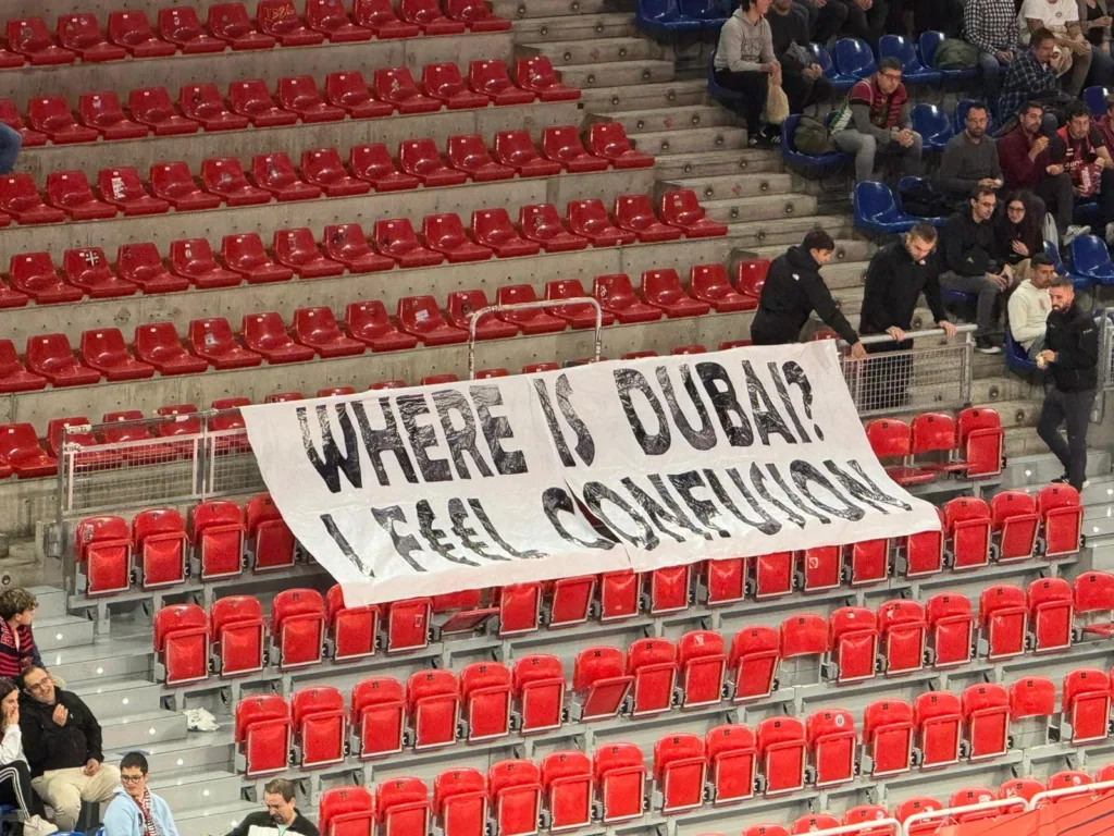 El grupo hintxa Indar Baskonia justificó su ausencia en el partido ante Dubai Basketball como protesta por la participación de este club de los Emiratos Árabes Unidos. Según el grupo, el los intereses económicos de la Euroliga, lavan la imagen de un país en el que no se respetan los derechos humanos. En el fondo de Indar, se colocó una pancarta en la que se podía leer: Where is Dubai? I f$$EL confusion. Es decir ¿Dónde está Dubái? Siento confusión.