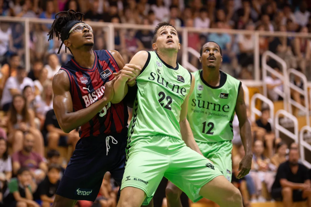 Foto: Saski Baskonia. Ondra Hanzlík ante Valentín Bigote en Santurtzi