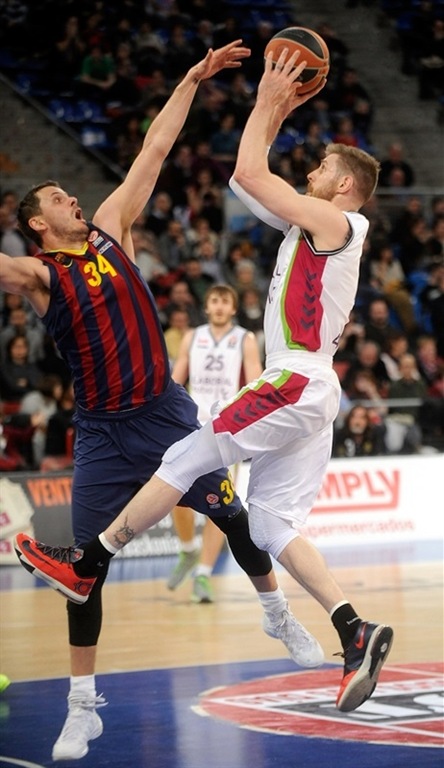 Una de esas derrotas se produjo ante el FC Barcelona en Vitoria en el partido correspondiente al final de la primera vuelta de este Top 16 disputado el 20 de febrero de 2014. El Barça cosechó su séptima victoria en el Top16 de la Euroliga en la visita al Buesa Arena, por 68-80, ante un Laboral Kutxa que sigue inmerso en una espiral negativa de derrotas y sufrió el sexto batacazo consecutivo en el torneo.