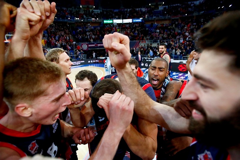 Foto:euroleague.net Los jugadores del Baskonia celebran la paliza sobre el Real Madrid