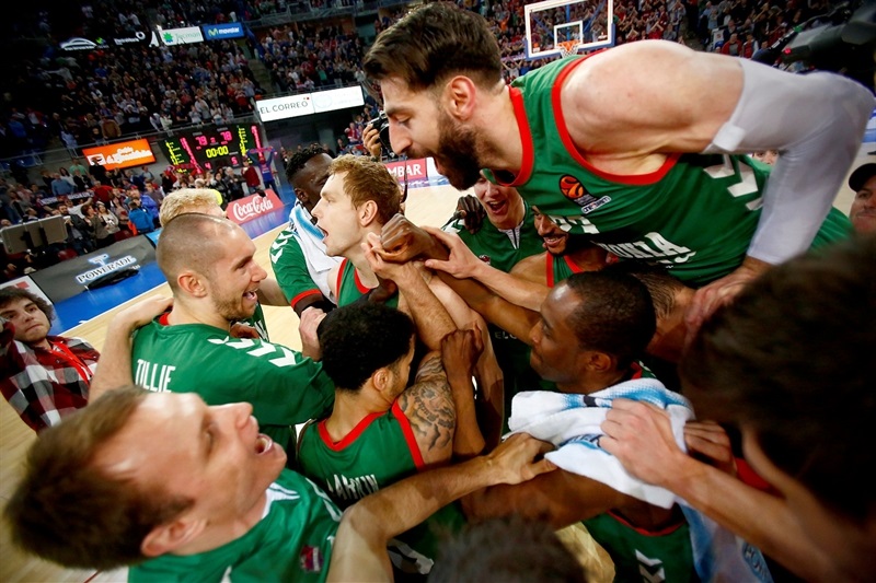 Foto:euroleague.net.Los jugadores del Baskonia celebran la victoria ante CSKA de Moscú