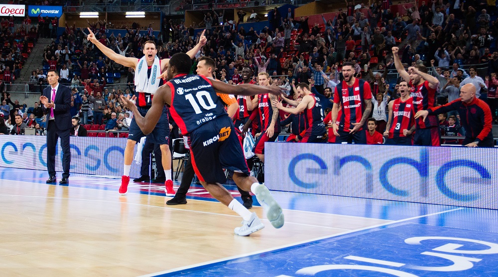 Foto:ACBphoto/I.Martín.Beuabois celebra la canasta que dio la victoria al Baskonia frente a Guipuzkoa Basket