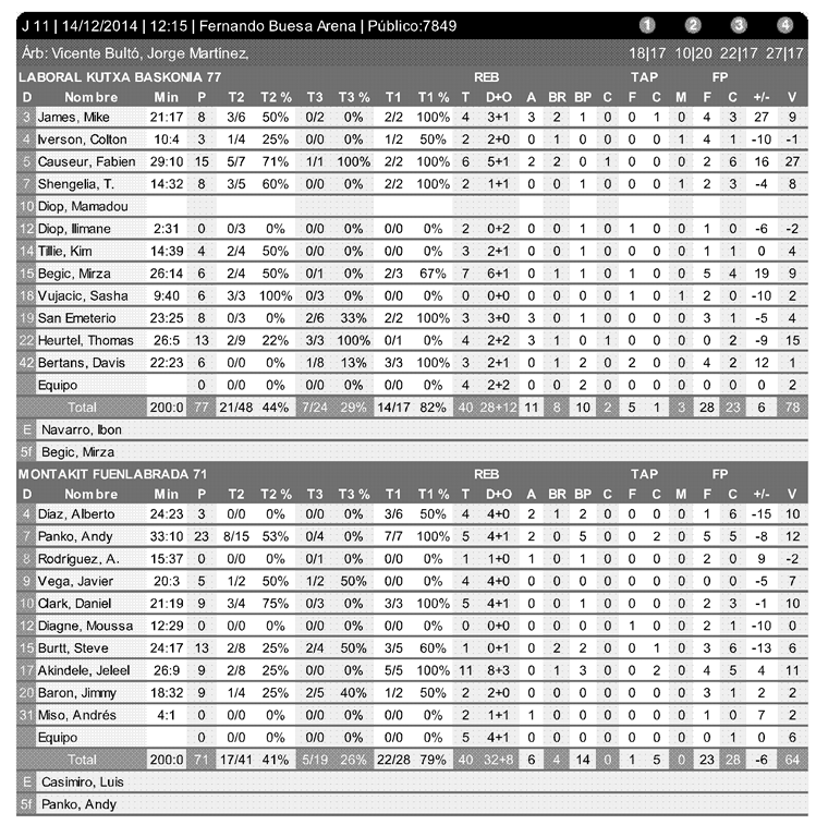 En esa recta final los vitorianos encadenaron seis canastas desde los 6,75 metros que le llevaron a ganar el partido.Emergió en ese papel Thomas Heurtel con tres triples, bien secundado por otros dos de San Emeterio y otro de Causeur que limaron la renta de cinco puntos, 59-64, y le permitieron afrontar el minuto y medio final con un cómodo 74-68.