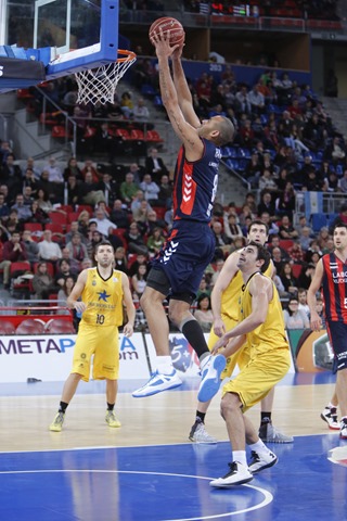 Saúl Blanco, con diez puntos, lideró el ataque amarillo, con un 17-23 en el minuto nueve, ante el juego espeso y pastoso de un Baskonia que llegó a remolque al final del primer acto (19-25).
