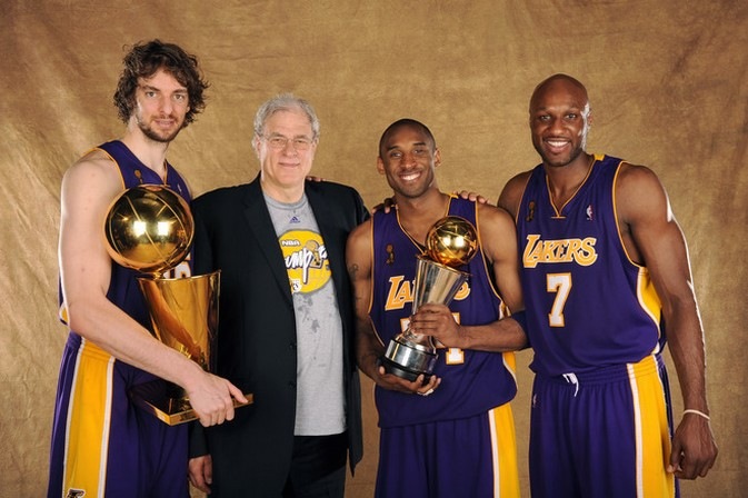 Fuente: NBA. Odom en la foto del titilo de la NBA logrado en 2010 con los Lakers de Phil Jackson
