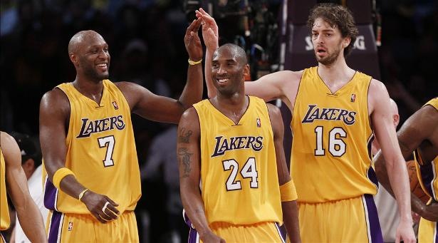 Foto:Usa Today. Lamar Odom (número 7) junto a Kobe Bryant y Pau Gasol en Los Ángeles Lakers.