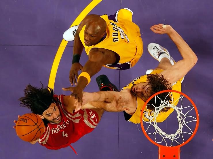 Foto: Gety. Scola defendido por Odom y Pau Gasol