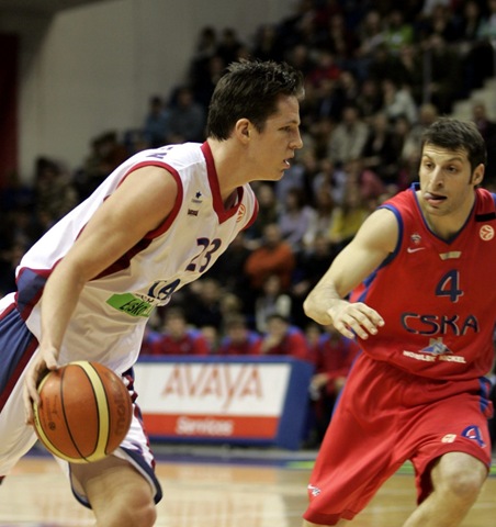 Foto:Euroleague.Casey Jacobsen ante Papaloukas de CSKA en el partido que anotó el punto 10.000
