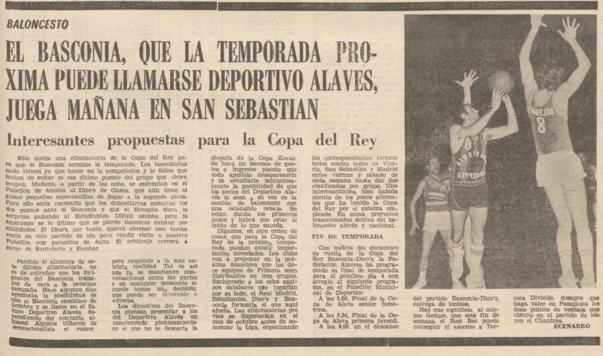 En 1974, Baskonia arrastraba un déficit de un millón de pesetas que comprometían su continuidad en la Liga.