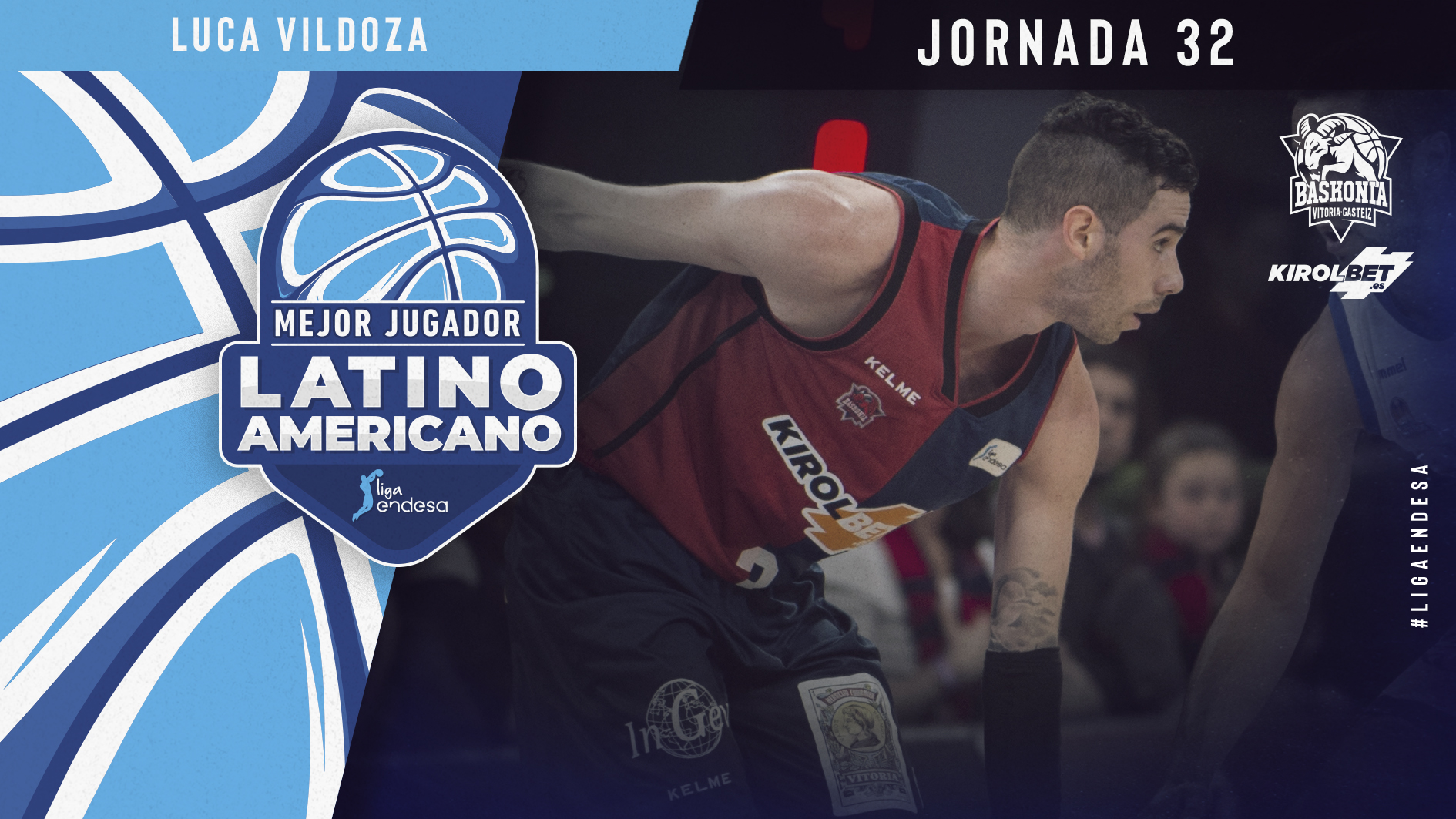 acb.com Redacción, 13 May. 2019.- Luca Vildoza se convierte en el Mejor jugador Latinoamericano de la Jornada 32 de la Liga Endesa gracias a su enorme actuación en la victoria del KIROLBET Baskonia ante el San Pablo Burgos.