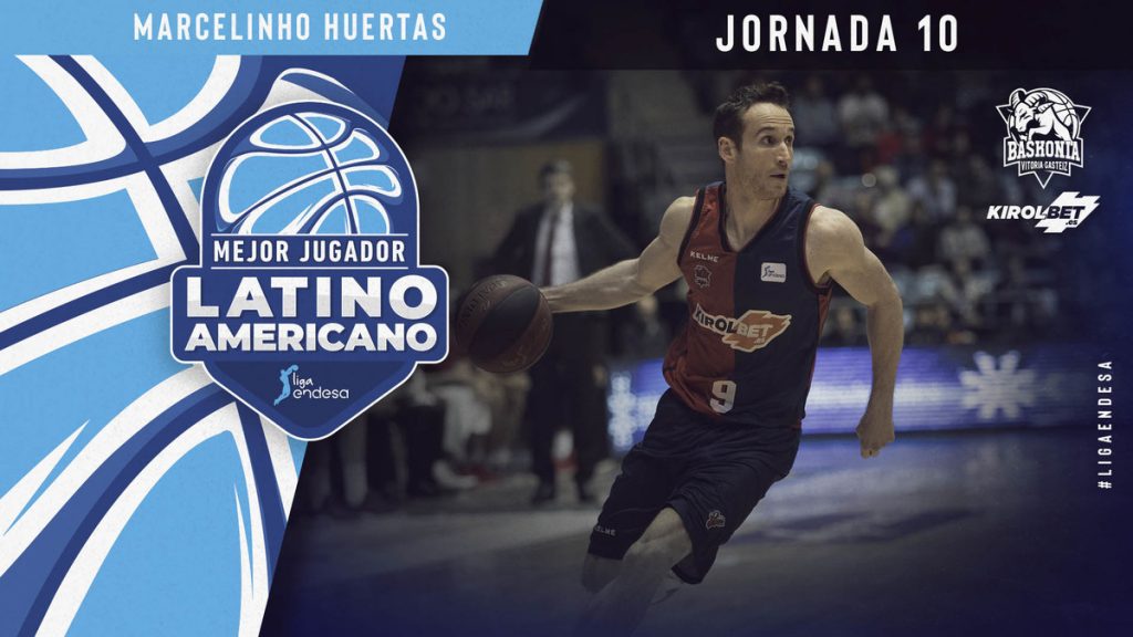 Por acb.com Redacción, 26 nov. 2018.- El papel fundamental de Marcelinho Huertas en la remontada de KIROLBET Baskonia en su visita a Fontes do Sar le convierte en el Mejor Jugador Latinoamericano de la Jornada 10.