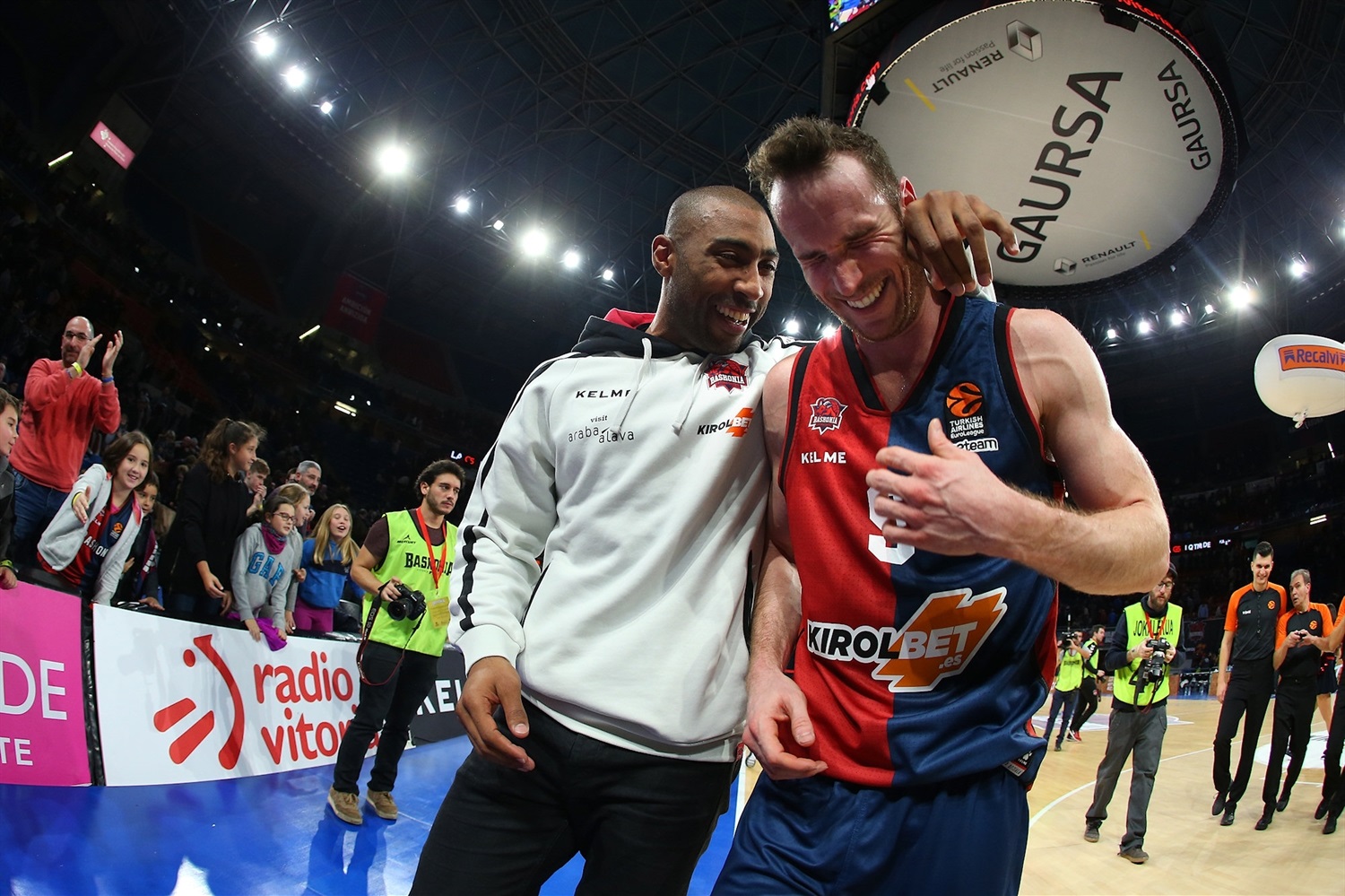 Foto:euroleague.net Marcelinho Huertas felicitado por Jayson Granger camino del vestuario