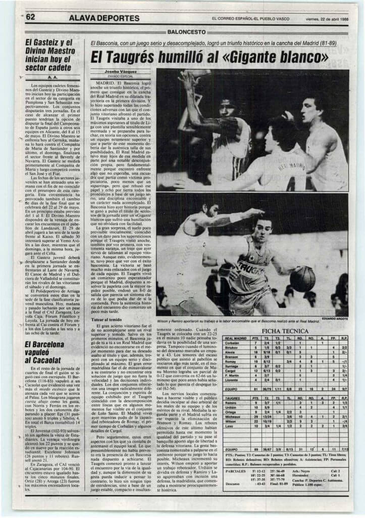 - 21/04/1988 Real Madrid – Taugrés 81 – 89