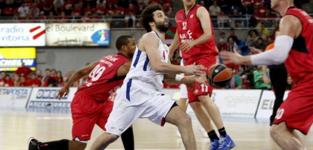 Foto:Euroleague.Fabien Causeur entrando a canasta ante Teodosic en 2013