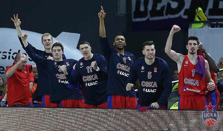 Foto:cskabasket.com El banquillo de CSKA celebra el triunfo sobre el Real Madrid