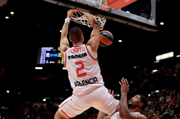 Foto: Euroleague. Josep Puerto con Valencia Basket ante Olimpia Milán