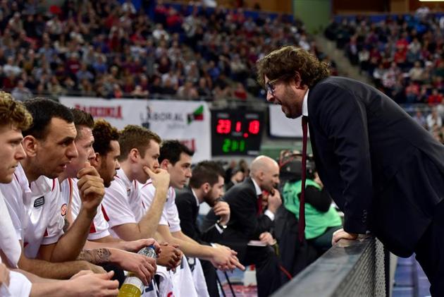 FotoEfe. Trincheri abronca a sus jugadores en el Buesa Arena