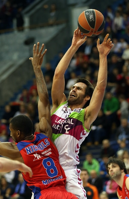 Foto:Euroleague.Fernando San Emeterio ante la defensa de Nichols