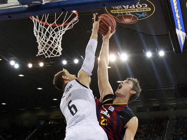 Foto:acbphoto.Andrés Nocioni tapona a Tibor Pleiss en la Final de Copa del Rey