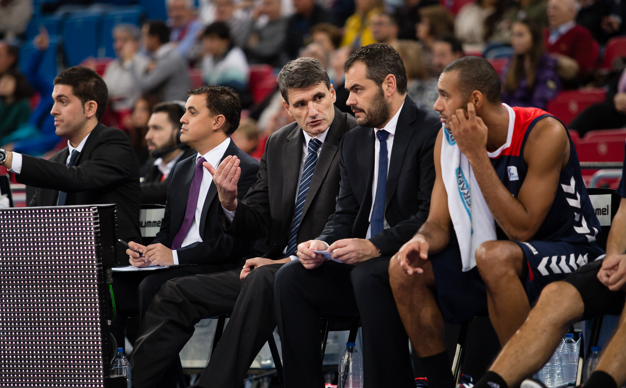 Foto:ACBphoto/I.Martin.Perasovic junto a su cuerpo técnico y Adam Hanga