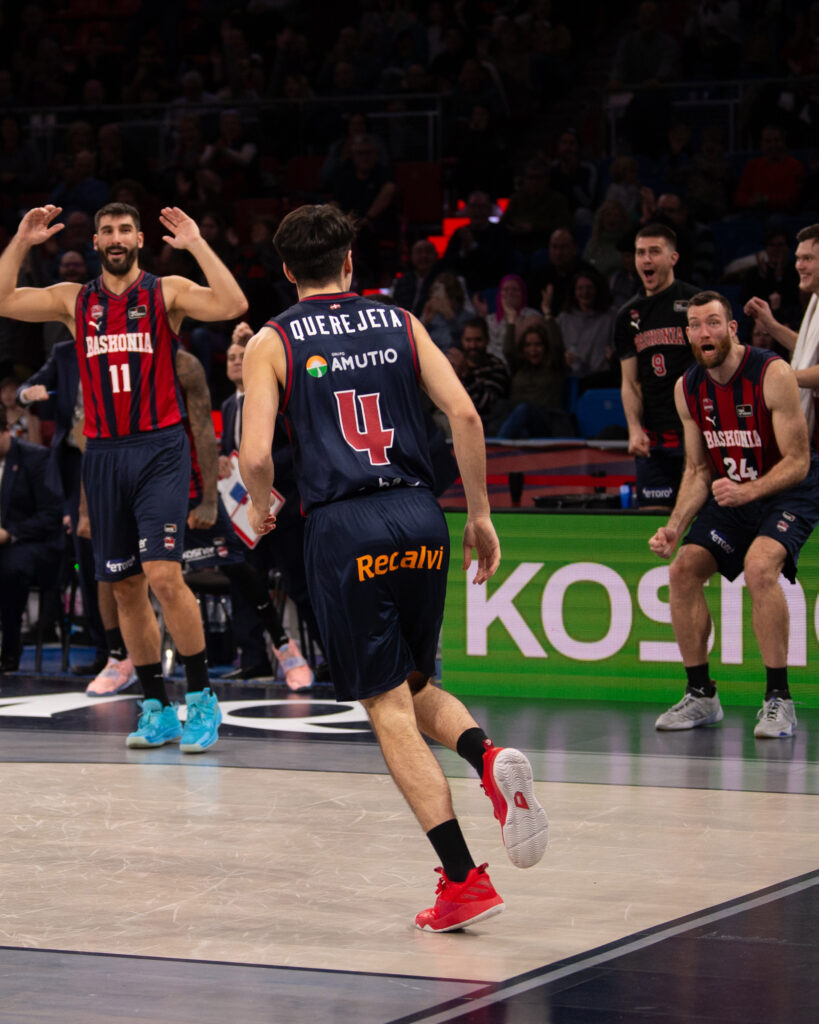 Foto:acbphoto/A.Bouzo, Joseba Querejeta tras anotar su primera canasta en la Liga ACB ante Morabanc Andorra (21/01/24)