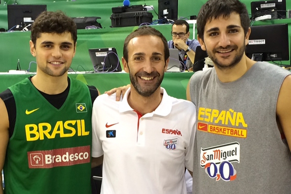 Foto:devuestrobasket.com. Sito Alonso entre Raul Neto y Ricky Rubio en el Mundial de 2014