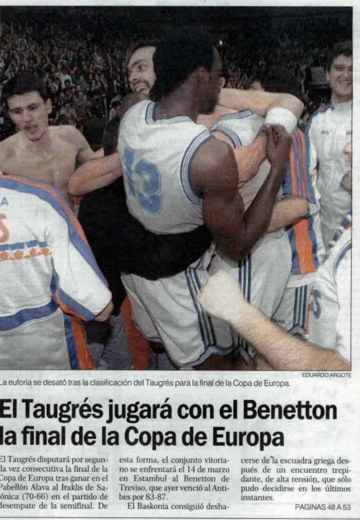 Tal día como hoy: 23 de febrero de 1995. Taugrés Baskonia se clasifica para la Final del Recopa de Europa