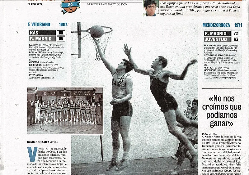 Foto: El Correo. La Copa celebrada en el Frontón Vitoriano en 1967 que enfrentó al Kas de Vitoria ante el Real Madrid.